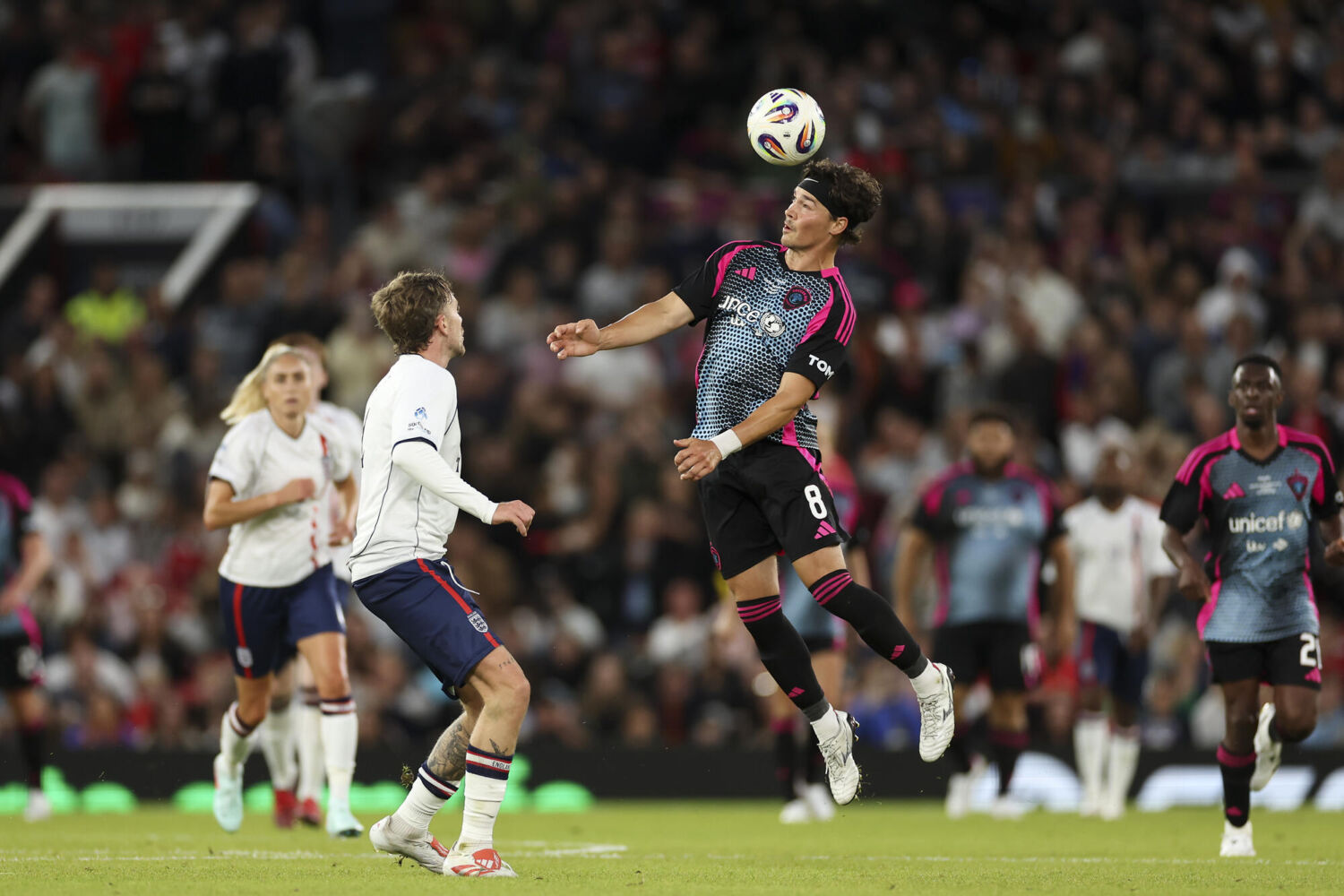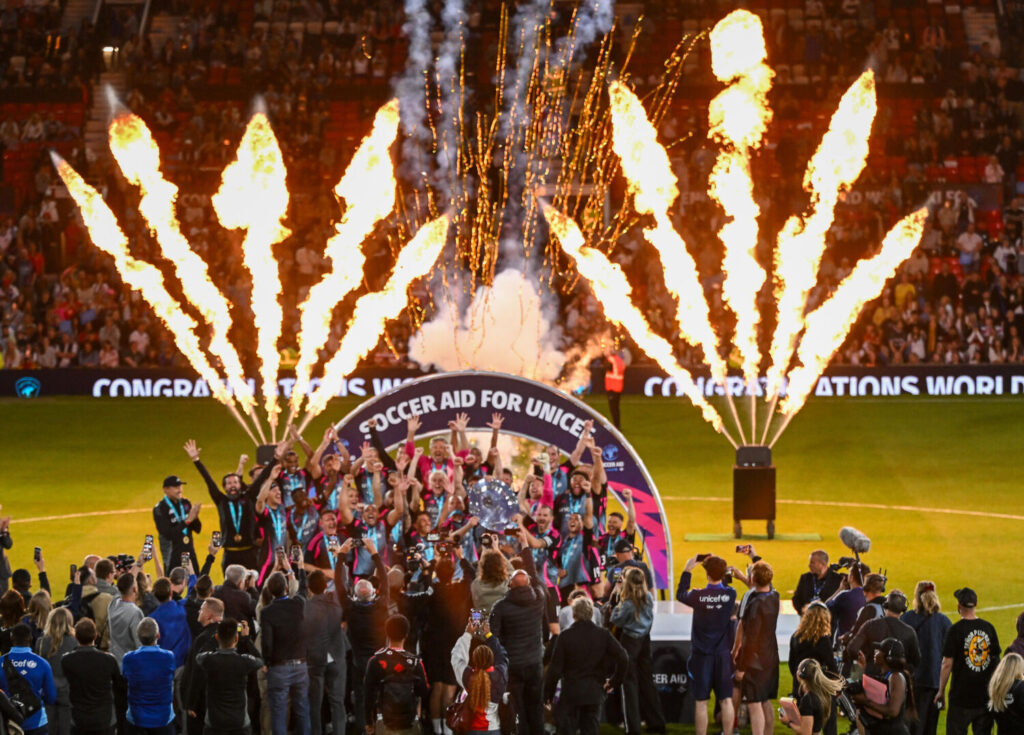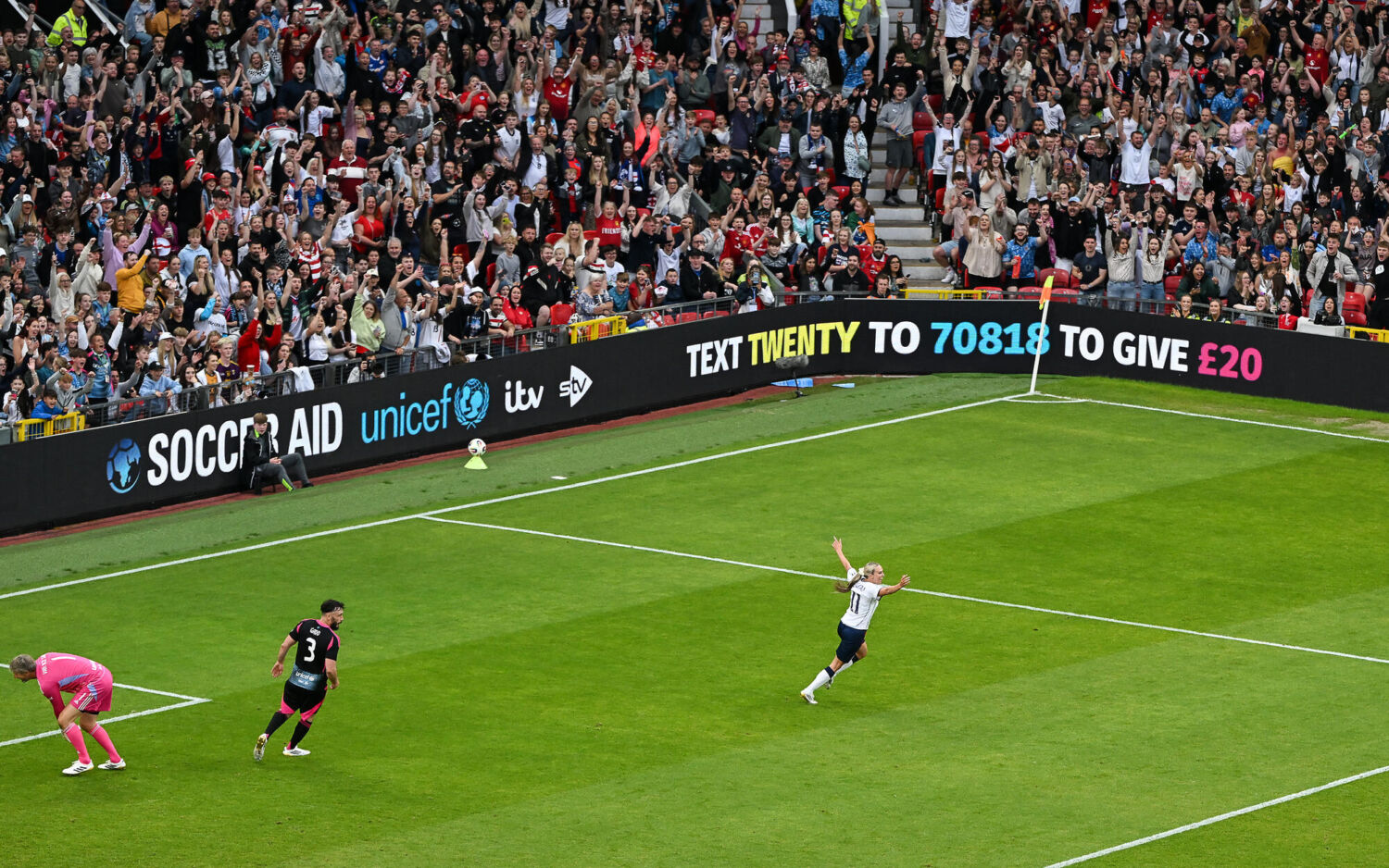 Toni Duggan celebrates scoring for England during Soccer Aid for UNICEF 2025 taking place on Sunday 15th June at Old Trafford, Manchester. Photographed by Daniel Hambury for UNICEF UK and Soccer Aid Productions. ©UNICEF/Soccer Aid Productions/Stella Pictures For further information, please contact [email protected]